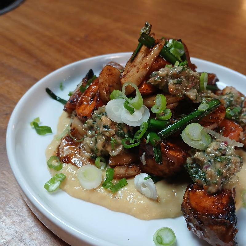 with Doenjang Corn Puree, and Perilla & Seed Pesto
